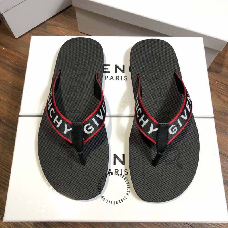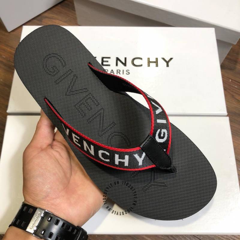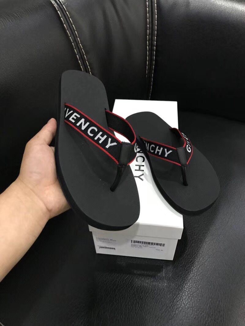 Givenchy mens flip flops black with red border and prominent lettering